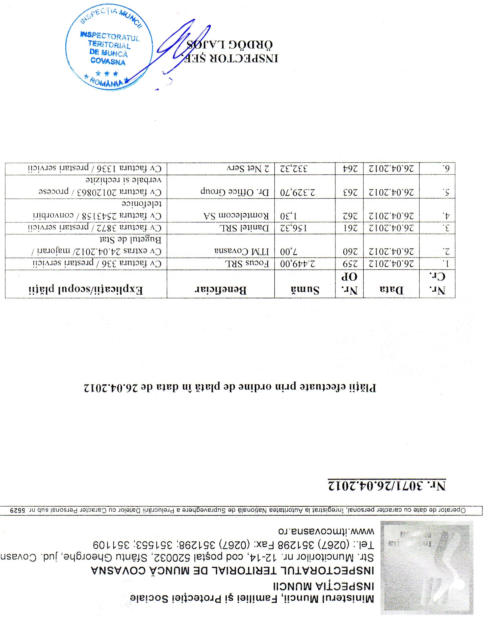 Campanie națională de prevenire a corupțieiCampanie de informare a studenților străini și a angajatorilorComunicat de presa ITM Covasna Covid-19Ordin nr.1140 din 13 iulie 2020 ( Registru zilierii ) Ordinul MMPS 721 din 25.03.2020Masuri de protectie COVID 19Recomandările Inspecției Muncii ca urmare a măsurilor speciale de controlși prevenire a infecției virale cu COVID-19INFORMAȚII DESPRE INTERMEDIEREA ȘI PLASAREA FORȚEI DE MUNCĂ ÎN STRĂINĂTATE Comunicate de presa Inspectia Muncii